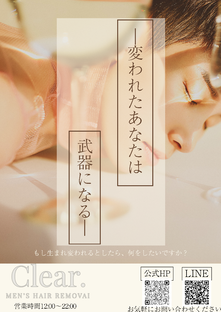 こんにちは!いつもClear.メンズ美容脱毛サロンをご利用頂き、誠にありがとうございます!